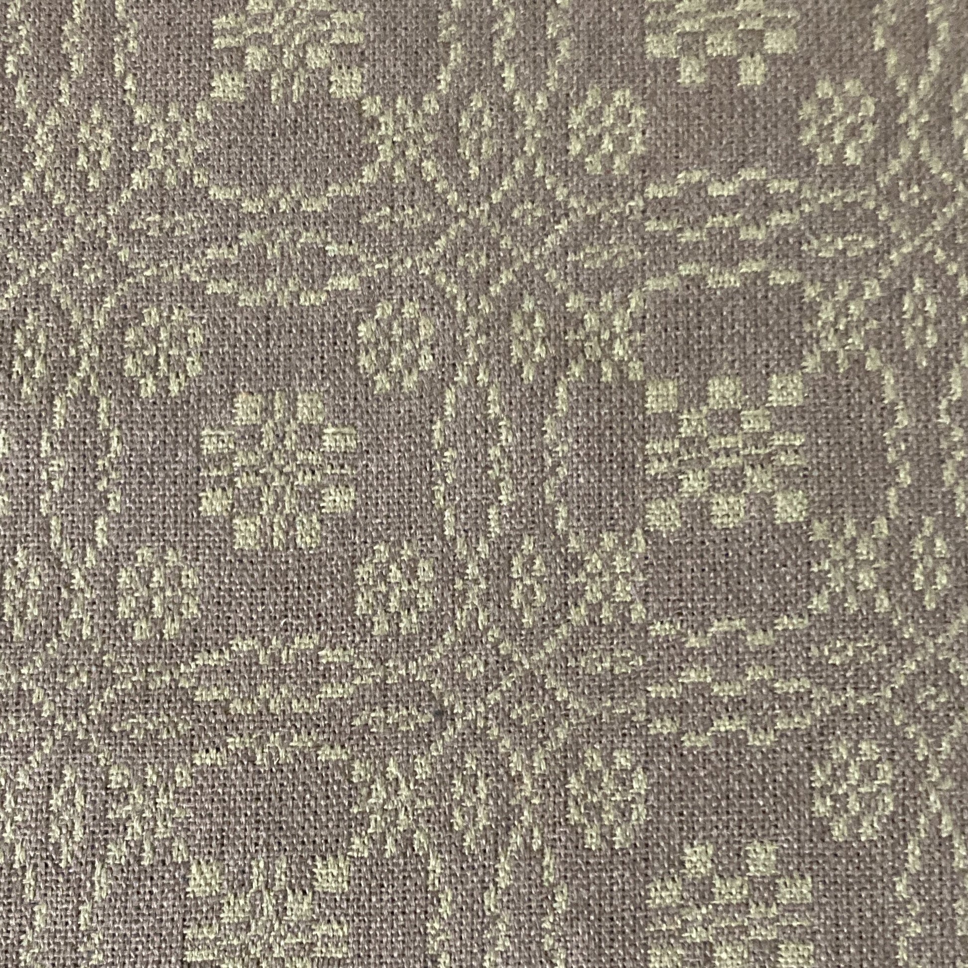 PRIMITIVE OVERSHOT COVERLET DESIGN CALLED "LOVERS KNOT" DOUBLE-WOVEN USING RECYCLED US COTTON YARN ON BDDW'S VINTAGE SHUTTLE LOOMS IN PENNSYLVANIA.